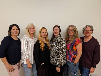 Nina Andres-Reindorf (Leitung), Sibylle Bärdges (Verwaltung), Denise Erbay (Verwaltung), Alexandra Peitz (Eltern-Kind-Bereich), Tanja Deis (Eltern-Kind-Bereich), Petra Lauermann (pädagogische Mitarbeiterin)